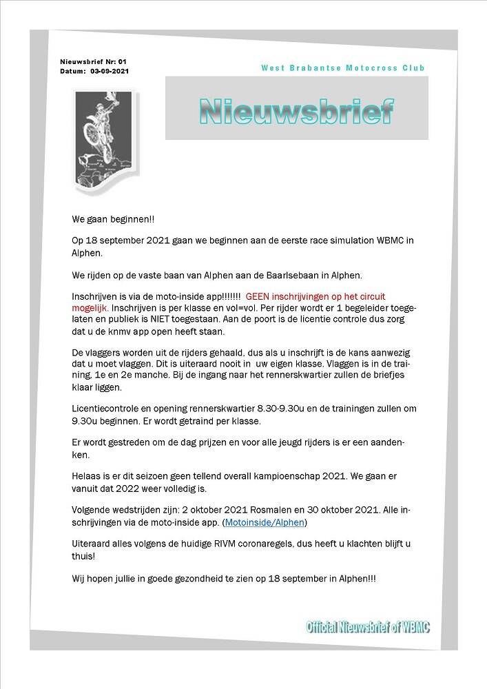 Nieuwsbrief 06 Afgelasting Almkerk en Rilland